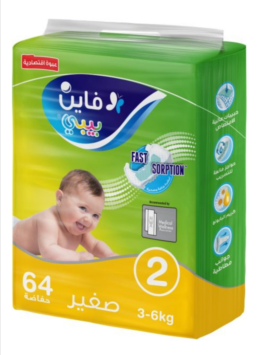 حفاضات فاين بيبي سريعة الامتصاص، مقاس 2، حجم صغير 3-6 كجم، العبوة الكبيرة 64 حفاضةE£ 185 -