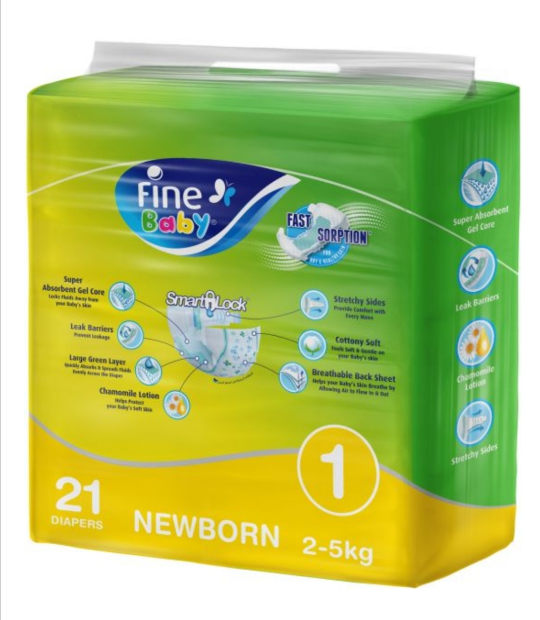 حفاضات فاين بيبي سريعة الامتصاص، مقاس 1، مواليد جدد 2-5 كجم، 21 حفاضةE£ 41 FineBaby -