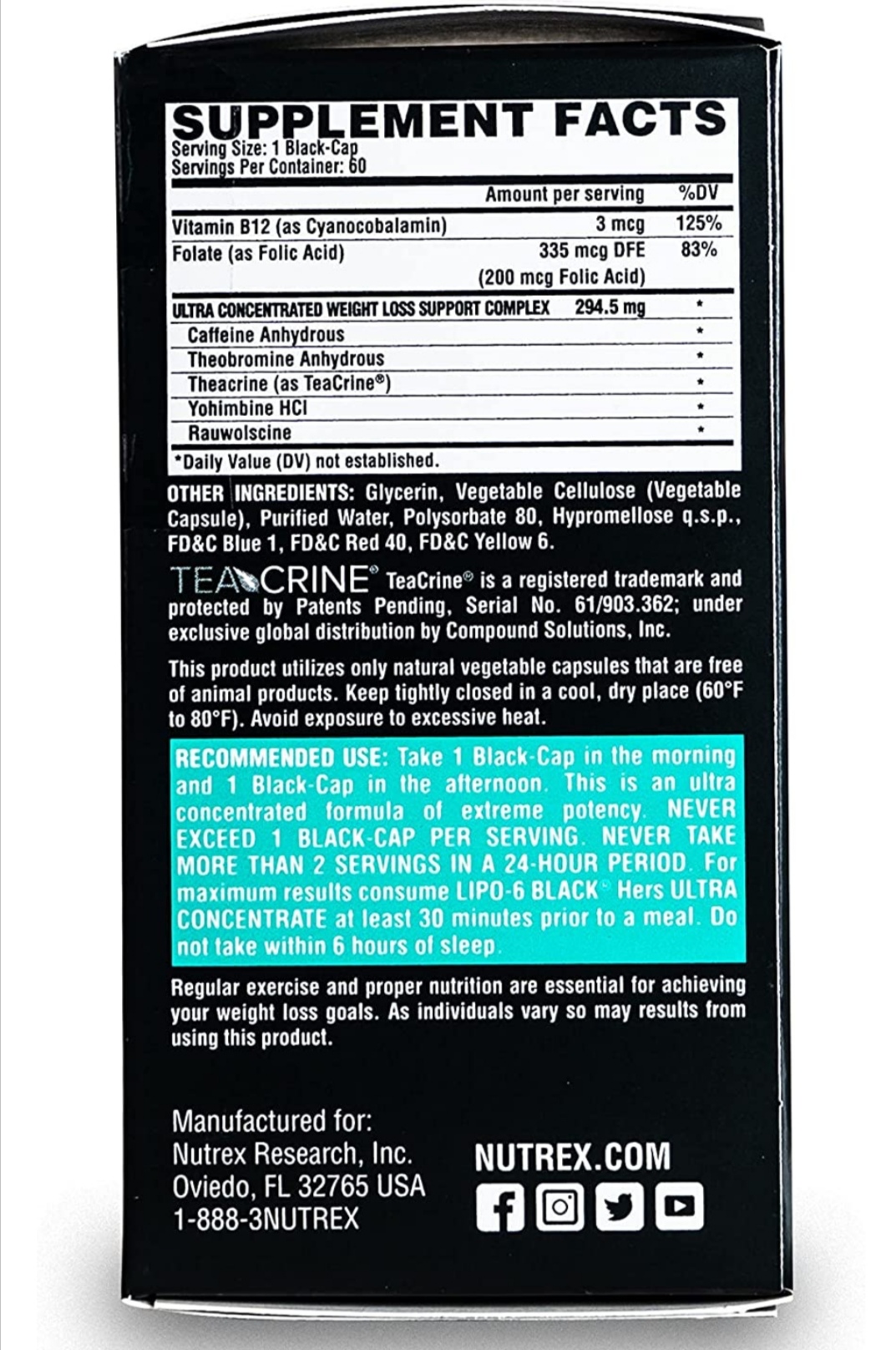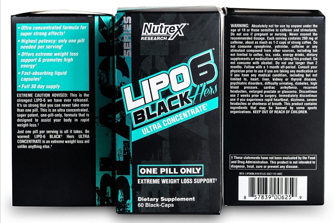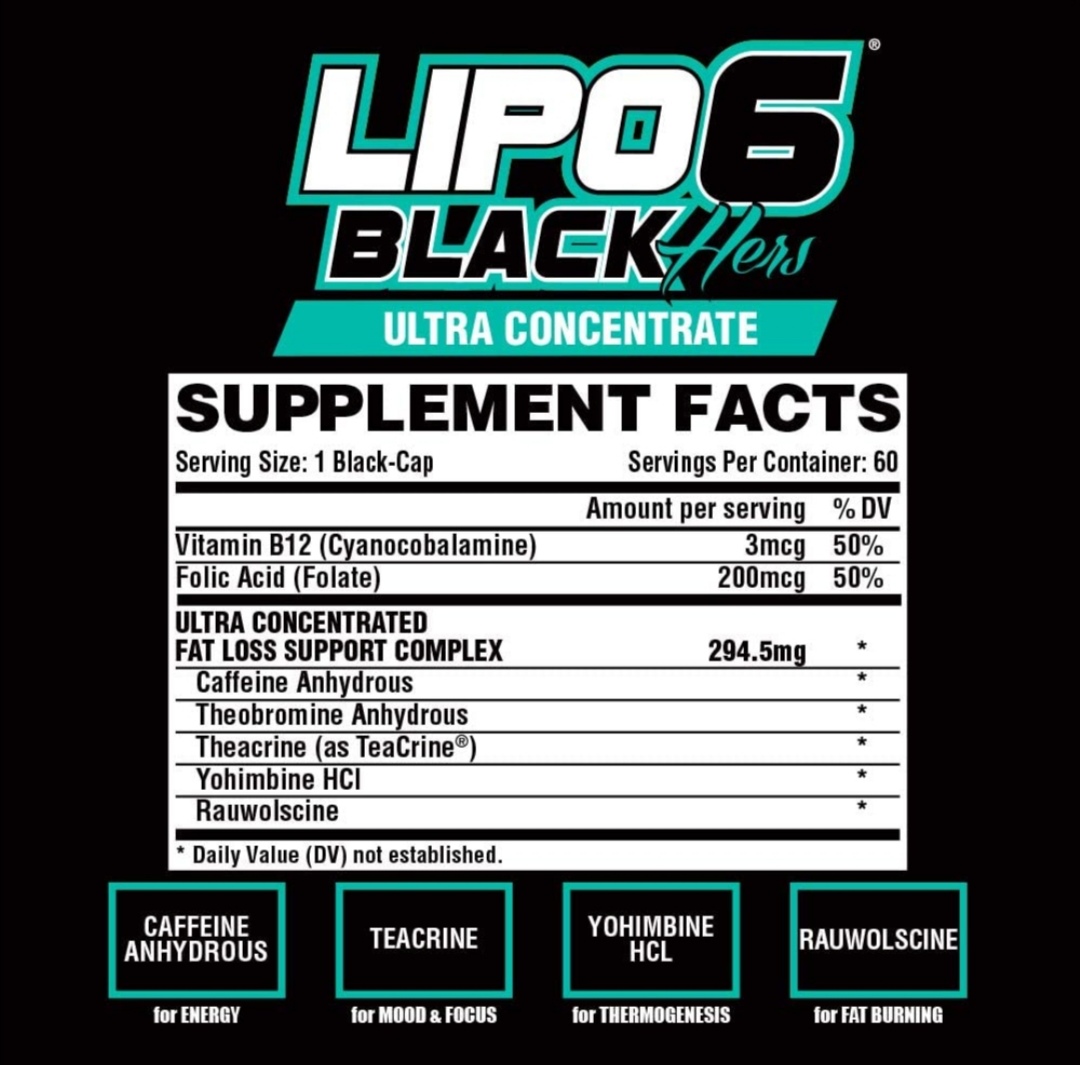Lipo-6 Black Hers Ultra Concentrate | Weight Loss Pills for Women | Fat Burner, Appetite Suppressant, Metabolism Booster for Weight Loss + Hair, Skin, & Nails Support | 60 Diet Pills