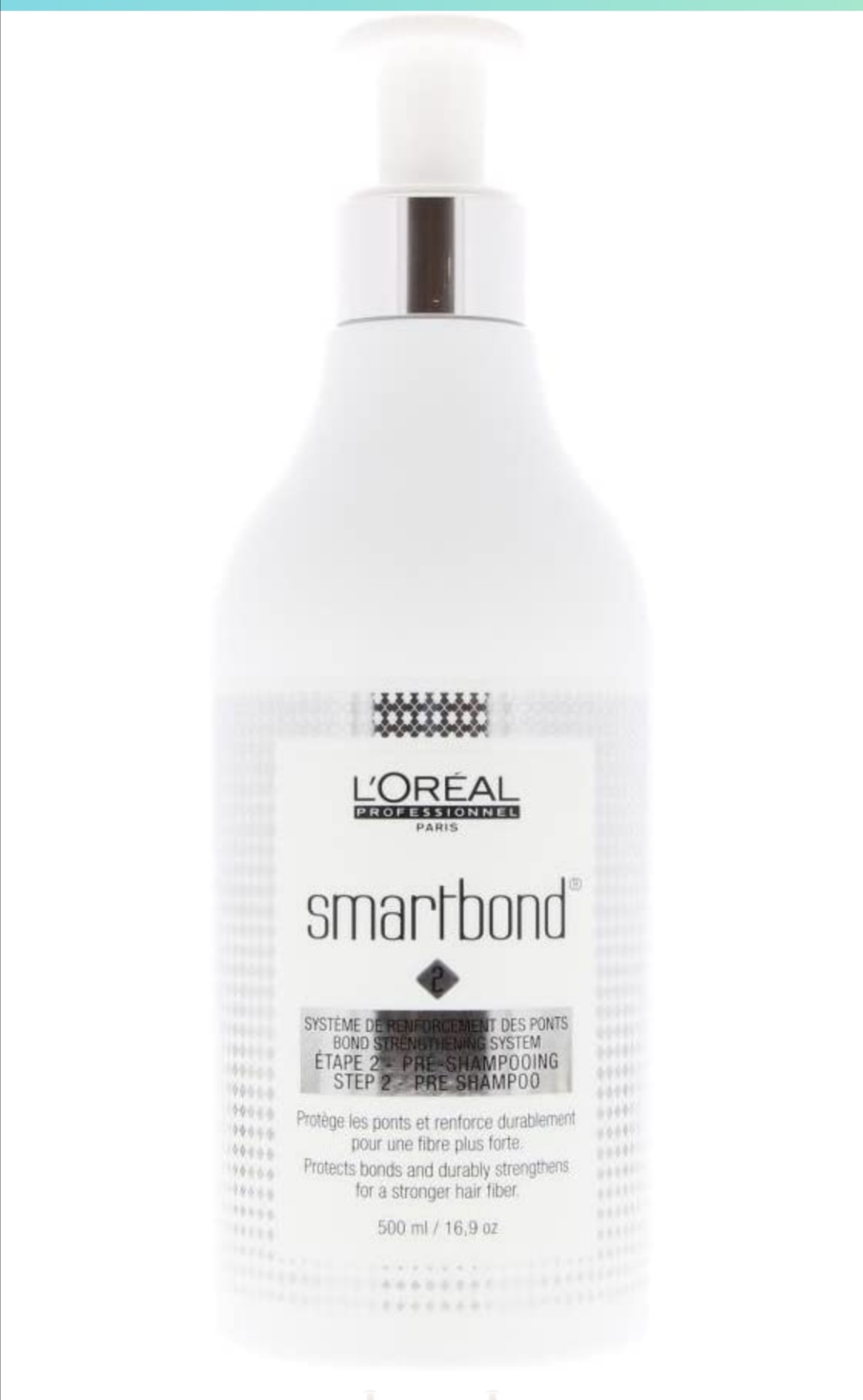 SMARTBOND - PRE SHAMPOO - STEP 2 (STEP 2) Instantly repair and even out the hair after discoloration.Hair Type: All hair types.Result / Effect: SMARTBOND is an ADD-ON system with an unprecedented combination of active ingredients: the only L'Oréal Professionnel formula that strengthens and protects hair fiber bridges during any transformation service (coloring, discoloration and straightening). Strengthened, resistant, soft and shiny hair. Size: 1 Pre-Shampoo 500ml