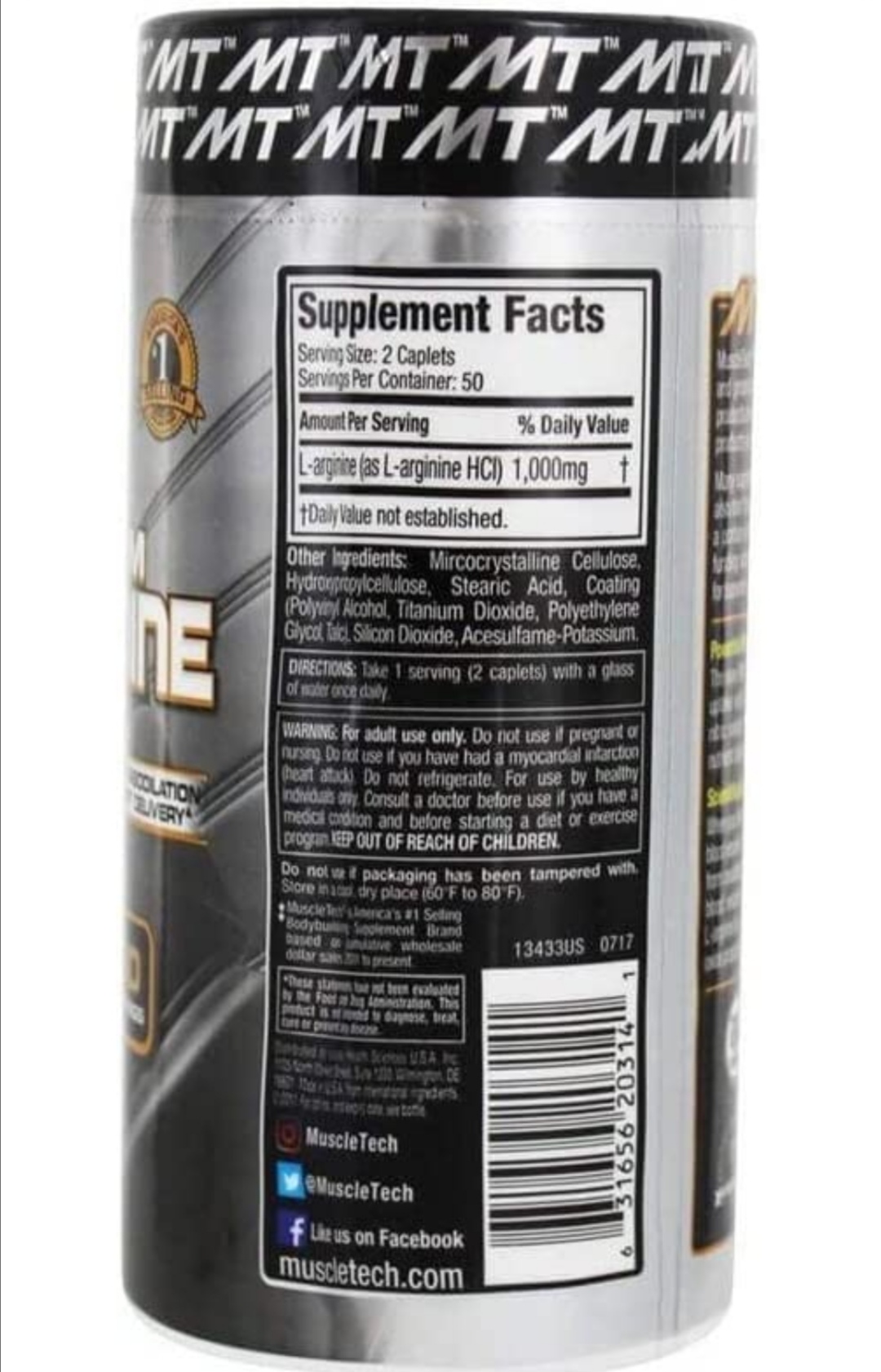 100% L-Arginine, 1000 mg, 100 CapletsMuscletech