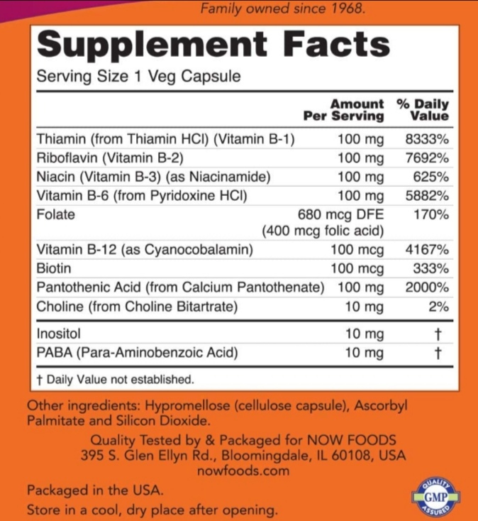 Vitamin B-100 100 Capsules-Now Foods