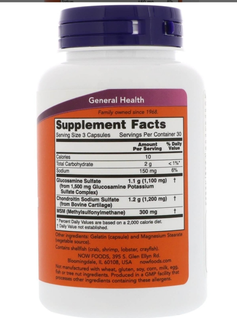 Glucosamine & Chondroitin with MSM 90 Capsules-Now Foods