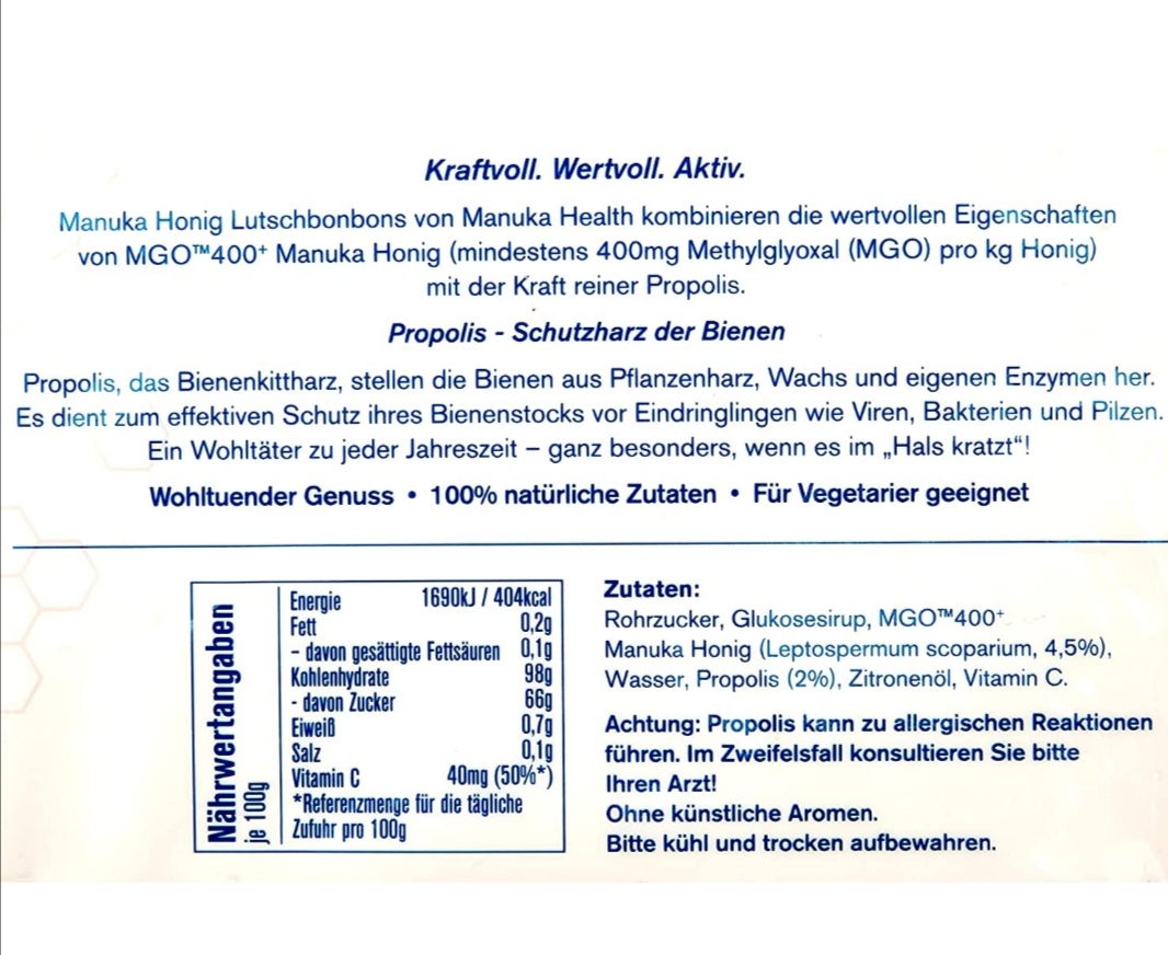 - MGO 400 + Lutschbonbons mit Propolis 250 g - 100%Manuka Health