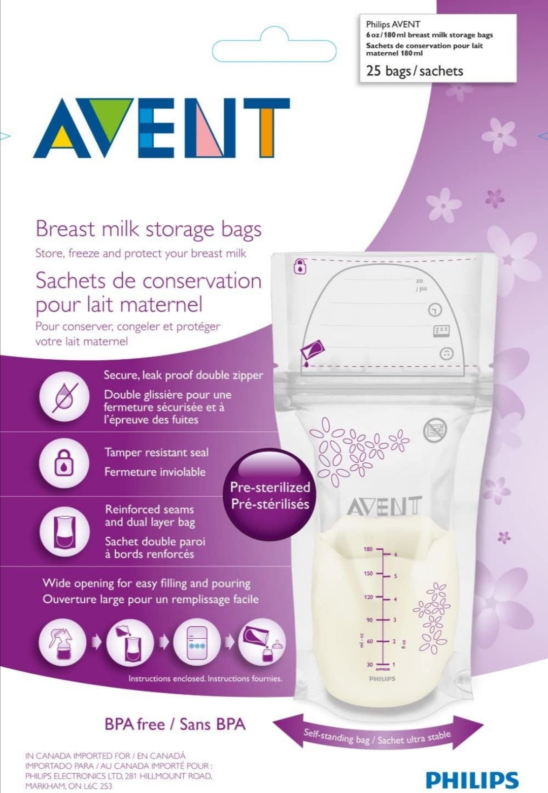 Breast Milk Storage Bags (180ml)- 50 Bags-PHILIPS AventE£ 439 AVENT -